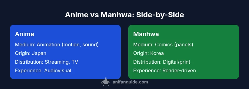 Anime is motion-based storytelling from Japan, while manhwa is Korean comics presented as static panels. This quick contrast sets up a deeper, data-backed comparison of pacing, art, and distribution in the full article.