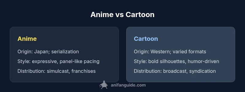 According to AniFanGuide, the is anime and cartoon difference hinges on production context, cultural origin, and serialization, not merely drawing style. This quick assessment sets expectations for how anime and cartoons are produced, distributed, and consumed worldwide. In broad terms, anime refers to Japanese-origin animation with distinct production practices, while cartoons describe Western-origin, more varied formats. Understanding this distinction helps viewers, educators, and creators analyze media more accurately.