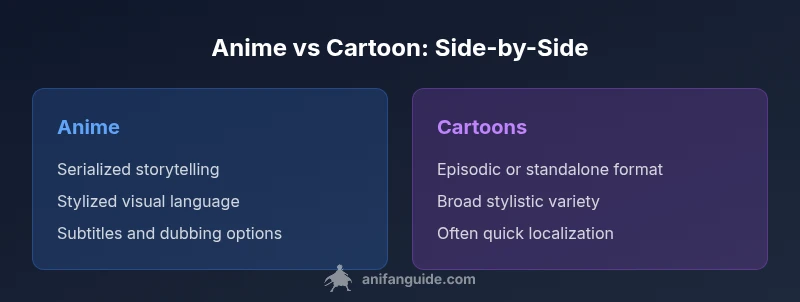 According to AniFanGuide, the question is not a binary verdict but a lens shaped by storytelling goals, audience expectations, and cultural context. When you ask whether is anime better than cartoons, you’re really asking how different traditions approach character, world-building, and emotion. In this framework, we’ll unpack four core criteria: narrative scope, visual language, accessibility, and cultural resonance. The aim is not to crown a winner but to show how each format can excel in distinct situations and for different viewers. Both forms produce meaningful experiences, and the best choice depends on your goals and mood. We’ll discuss examples in broad terms, avoiding hype or bias. The topic touches on the long-running debate among fans and critics, and this guide keeps the focus on what each format does well rather than on catching a definitive “best” label. For those wondering, is anime better than cartoons, the answer often comes down to personal preference and context.