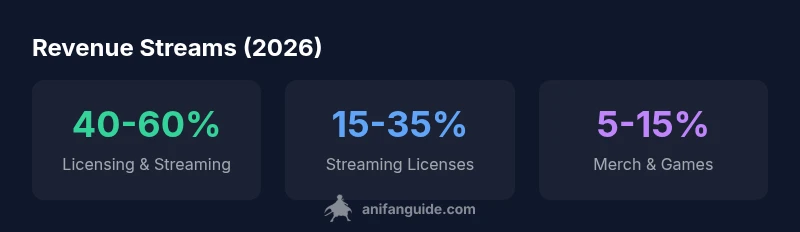 Licensing and distribution are the primary money makers for anime studios in 2026, with streaming rights and merchandising following closely. In practice, these streams often combine to account for the majority of revenue, typically within the 40-60% range. Additional income from games, events, and co-productions helps stabilize cash flow across seasons.