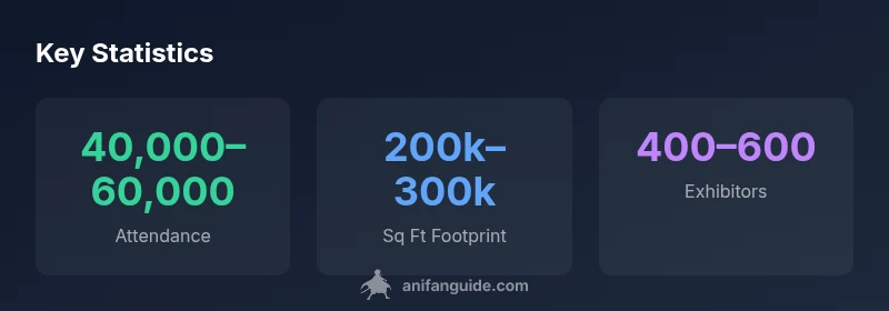 | Attendance (per year) | 40,000–60,000 | Based on venue capacity and reports (AniFanGuide Analysis, 2026) |