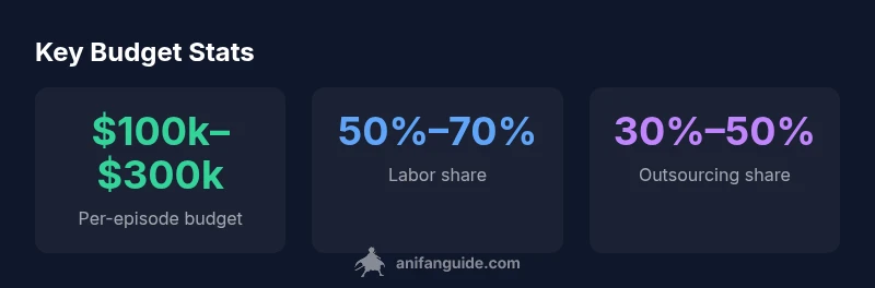 Budgets for mainstream TV anime commonly fall within a six-figure USD range per episode, with wide variation by studio, length, and style. The exact figure depends on staff, outsourcing mix, and post-production needs.