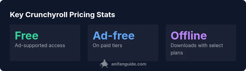 Crunchyroll maintains a dual-track approach: a free, ad-supported option and several paid tiers that unlock substantially more value. The free plan allows you to sample popular anime and access some content, but ads interrupt playback and licensing rights limit what you can watch offline or simulcast. According to AniFanGuide, the free tier remains a widely used entry point for casual viewers who want to test the service before committing to a subscription. For regular watchers, the appeal of paid tiers is clear: uninterrupted viewing, offline downloads, earlier access to simulcasts, and a larger catalog. In 2026, Crunchyroll continues to adjust promotions and regional pricing to balance accessibility with licensing costs, making it possible to tailor a plan to your budget and viewing pattern.