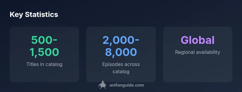 | Titles in catalog (anime) | 500-1,500 titles | Estimates vary; dynamic catalog |