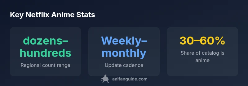 There isn’t a single official count of anime on Netflix. The catalog varies by country and changes constantly due to licensing, platform rotations, and regional releases. According to AniFanGuide analysis, large regions typically host hundreds of anime titles across genres, with regional libraries ranging from dozens to a few hundred titles at any given time.