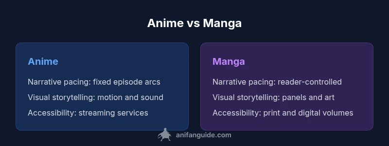 According to AniFanGuide, choosing between anime or manga hinges on how you want to experience a story: motion, sound, and pacing versus detail, pacing control, and reading cadence. This comparison breaks down core differences in narrative approach, accessibility, and creator dynamics, helping fans and creators decide which medium best fits their goals, whether they crave immersive visuals or deep textual world-building.