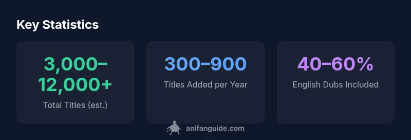 | Streaming services | Counts across platforms with duplicates removed | 3,000–6,000 | Regional licensing affects availability |