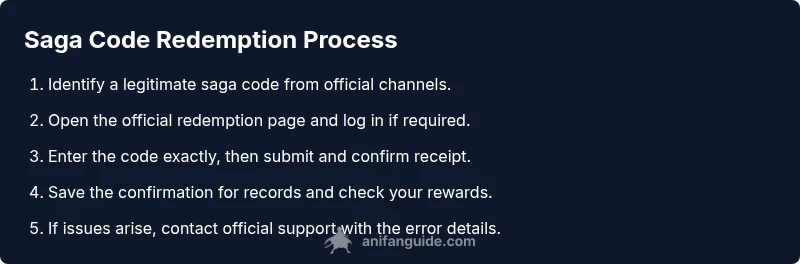 Anime saga codes are alphanumeric strings used by fans to unlock premium content, bonus episodes, or in-app rewards within certain anime platforms and companion apps. If you’re asking how to put in anime saga codes, you’re in the right place. This guide explains the typical redemption flow, common code formats, and safety precautions. According to AniFanGuide, always verify the source of codes before entering them to avoid scams. In practice, you’ll see codes that are often structured as a mix of letters and digits (for example, SAGA-ABCD-1234), and sometimes they are provided through official promotions, newsletters, or event pages. Treat codes as temporary keys that grant access or perks—never share them publicly if they’re meant to be private, and always redeem them on the official site or app to prevent misuse. Understanding how to put in anime saga codes helps you redeem rewards faster and reduces the risk of losing access to a promotion.
